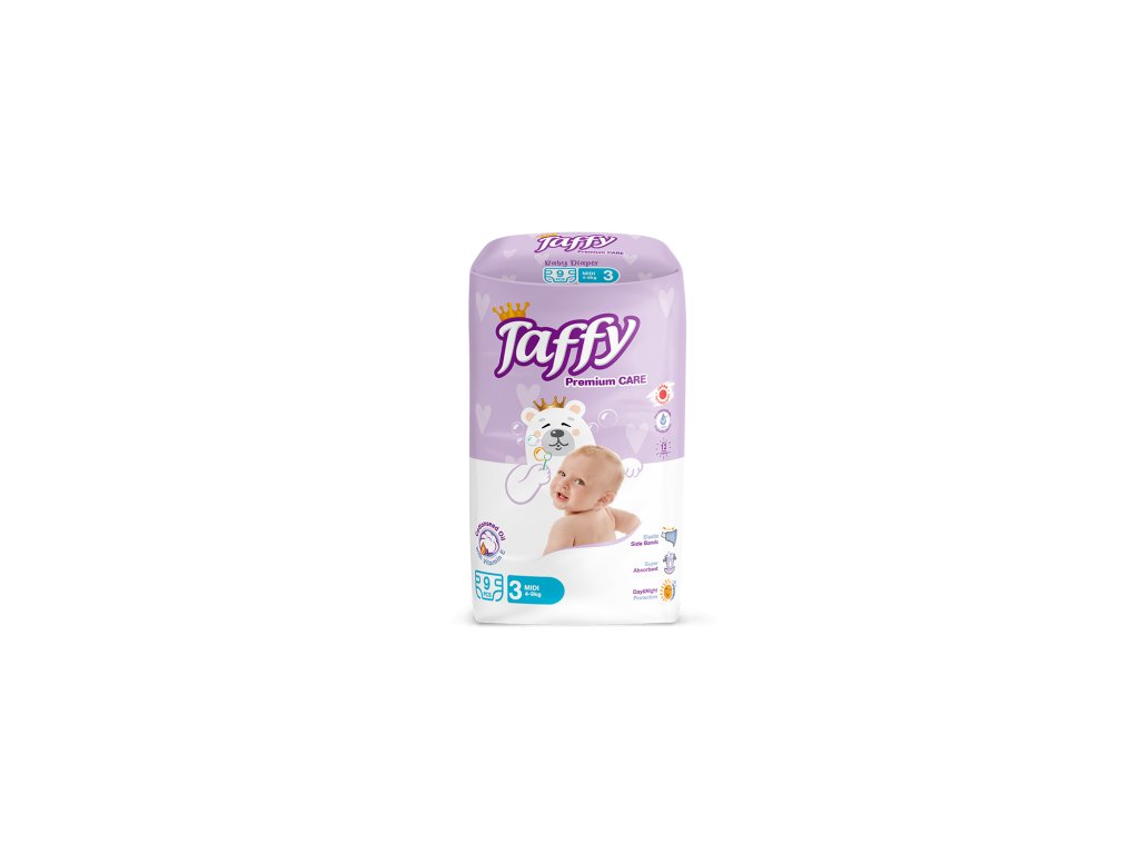Prémiové plenky Taffy vel. 3 (MIDI) pro miminka od 4 do 9 kg.