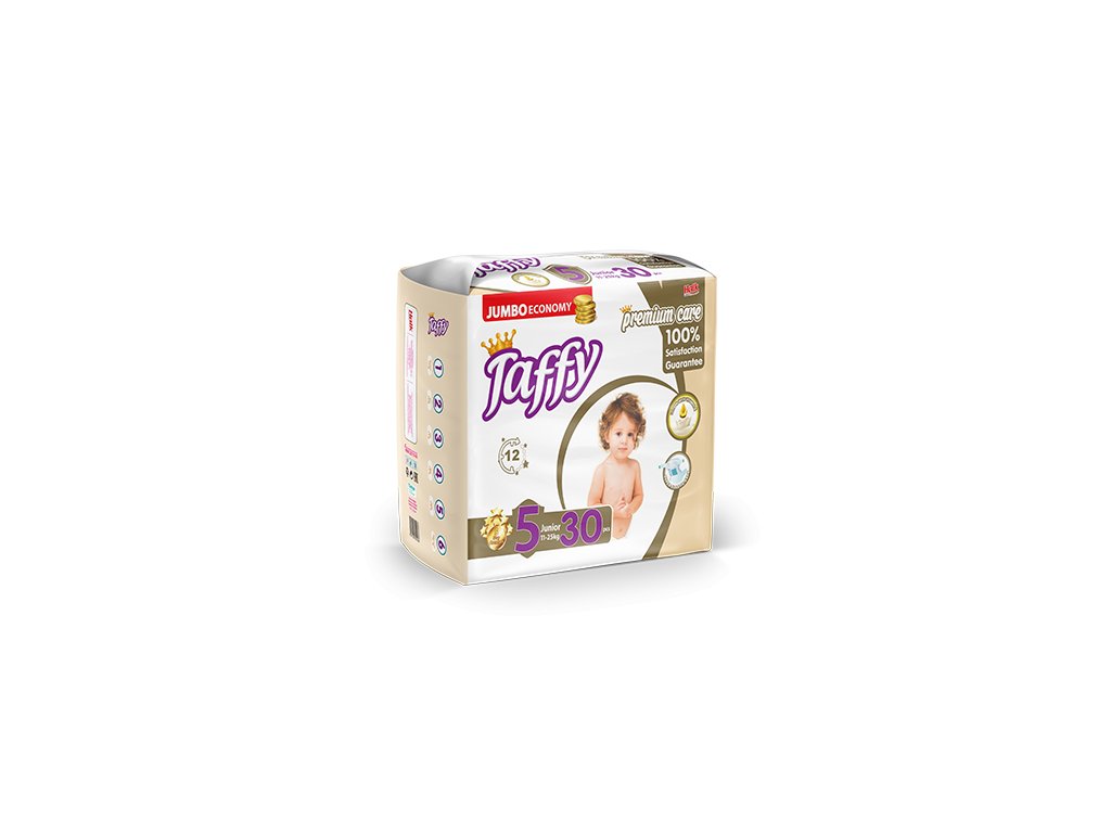 Prémiové plenky Taffy vel. 5 (JUNIOR) pro miminka od 11 do 25 kg.