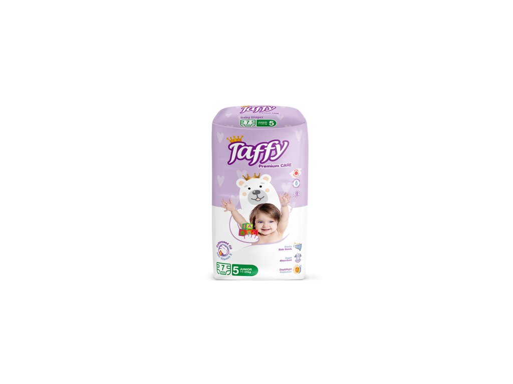 Prémiové plenky Taffy vel. 5 (JUNIOR) pro miminka od 11 do 25 kg.